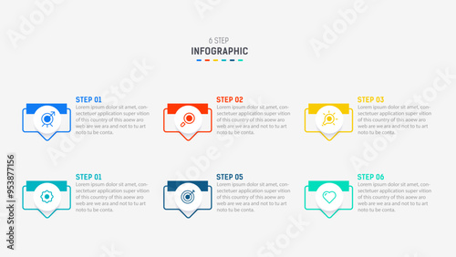 Business infographics design for Six Step, option, parts or process. Infographic 6 element design template for presentation. process diagram, step banner, flow chart, 6 option template.