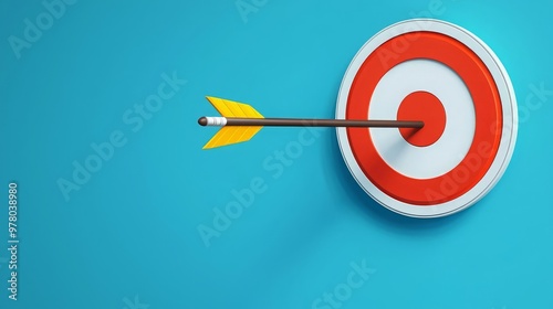 Business Achieve Success Goal Arrow hitting the center of a target, symbolizing business success, no face, flat design illustration