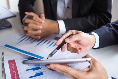Business adviser analyzing financial figures denoting the progress in the work, consult concept.