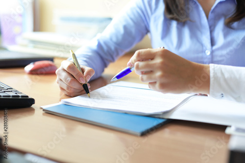 Business adviser analyzing financial figures denoting the progress in the work of the company.
