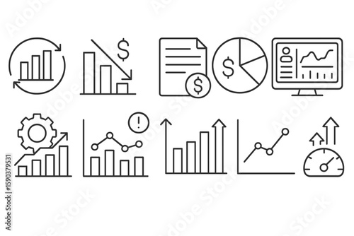 Business, analytics outline icon set. data, finance, metrics, graphs line collection