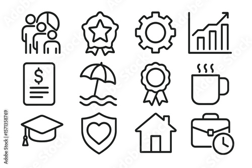 Business and education icons vector illustration in flat line style for web and print design