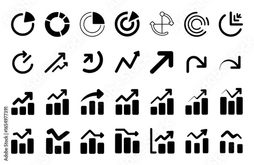 Business and finance graph and chart icons including bar charts line graphs and arrows data
