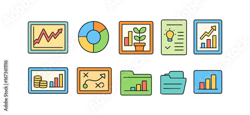 Business and finance icon set. flat style for growth, management, and statistics