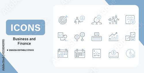 Business and Finance Icons A Comprehensive Set of Financial Strategy and Growth Icons