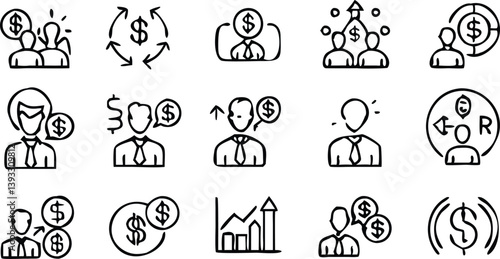 Business and Finance Line Icons Set | Strategy, Leadership, Growth, Innovation, and Money Management Vector Collection.