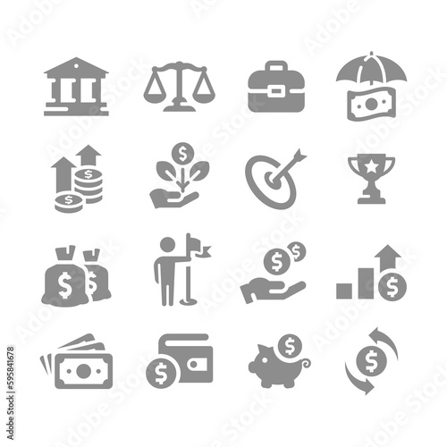 Business and finance vector icon set. Money, dollar bill, piggy bank fill icons.