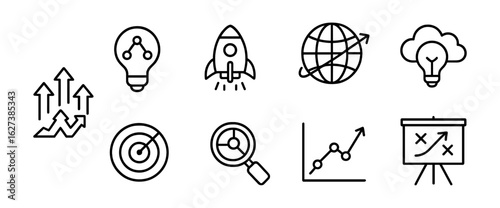Business and strategy line icon set. marketing, growth, analytics, planning icons collection