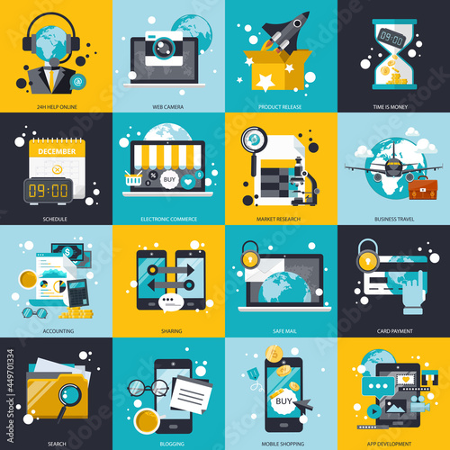 Business and technology icon set for websites and mobile applications. Flat vector illustration