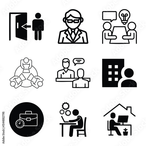 Business And Work Icons Set Vector Illustration People In Meeting Office Remote Work