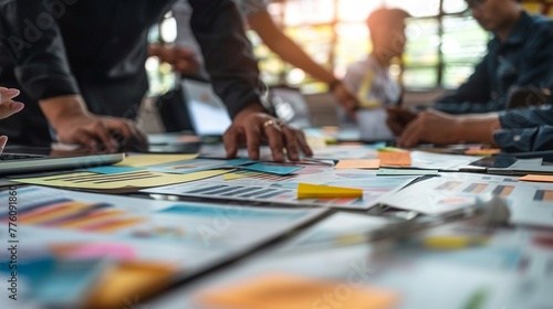Business Annual Meeting: Close-Up of Businessman's Hand Sharing Ideas and Brainstorming for New Project Launch
