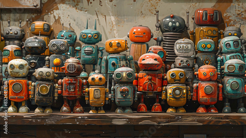 Business artwork featuring a hand-drawn vintage robot collection, suitable for digital layouts and decorations