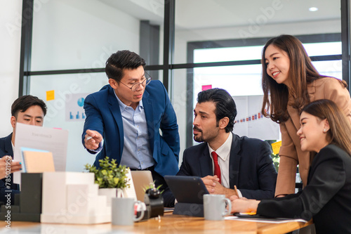 Business asian team professional collaborative meeting at office, teamwork, innovation and strategy, charts, brainstorming session, ideal corporate, business planning, successful startup at workplace