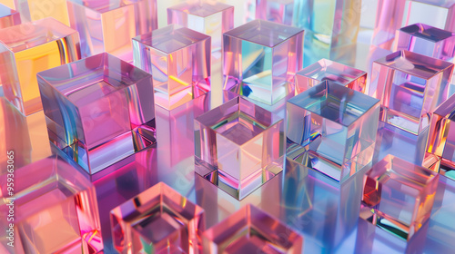 business background wallpaper with an arrangement of translucent glass cubes stacked in varying sizes