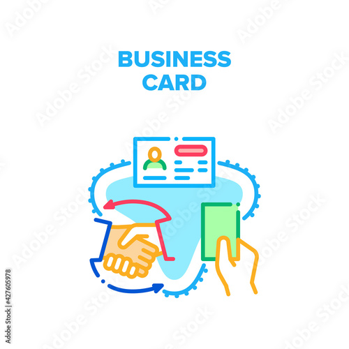 Business Card Vector Icon Concept. Business Card With Information Businessman Giving To Partner. Call Number And E-mail Info For Contact With Ceo Or Company Employee Color Illustration