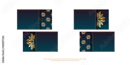 Business card with gradient blue color with luxury gold pattern for your brand.