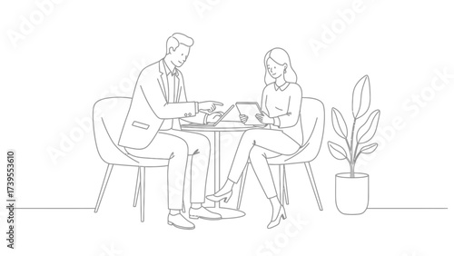 Business Colleagues Collaborating With Technology Illustration