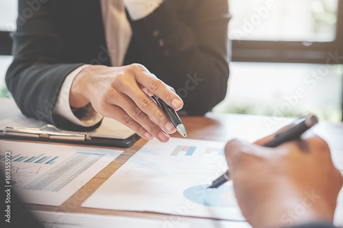 Business concept. Business people discussing the charts and graphs showing the results of their successful teamwork.