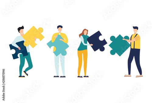 Business concept. Team metaphor. people connecting puzzle elements. Vector illustration flat design style. Symbol of teamwork, cooperation, partnership.