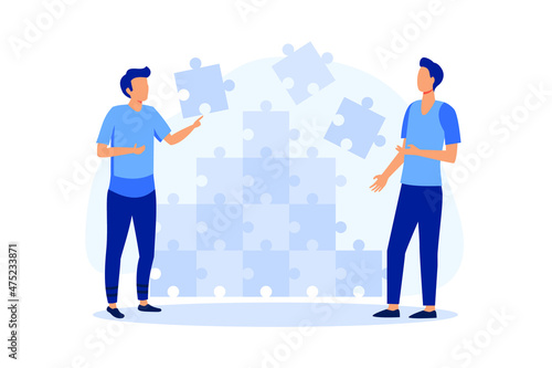 Business concept. Team metaphor. people connecting puzzle elements. Vector illustration flat design style. Symbol of teamwork, cooperation, partnership. flat design modern illustration