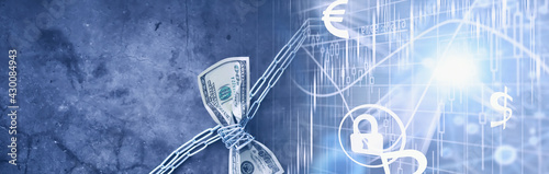 Business concept. The depreciation of the national currency. Hundred dollar bill. Inflation and stagnation. Tighten the hundred dollar bill with a measuring chain.