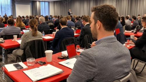 Business Conference with Attentive Audience Engaged in Professional Presentation at Modern Venue, Networking and Learning Opportunities Amidst Professional Atmosphere