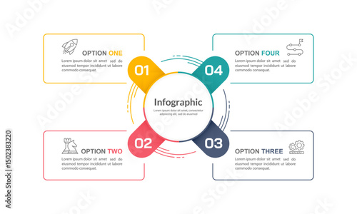 Business cycle infographic with 4 steps or options. Process, Strategy, Planning and Presentation. Vector illustration.