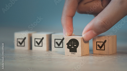 Business Ethics inside human mind, Business code of ethics concept. Ethical investment, sustainable development. The effective compliance and ethics culture on grey background with copy space.