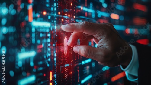 Business, Finance and Investment Concept: Businessman login with fingerprint scanning technology. fingerprint to identify personal.