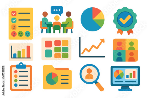 Business, finance flat icon set. commerce, analytics, reporting icons collection