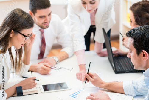 Business Frauen und Männer bei Besprechung finden Ideen in gemeinsamer Arbeit im Büro