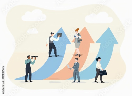 Business Growth and Success Concept - Team with Rising Arrows