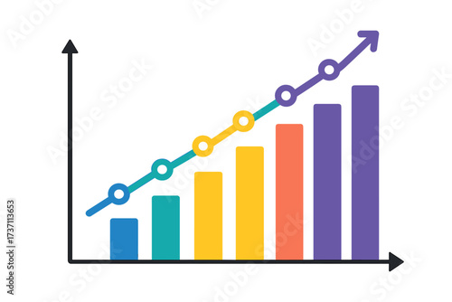 Business growth chart vector infographic. Financial data visualization with increasing bar graph and arrow. Concept of success, progress, and market analytics report.