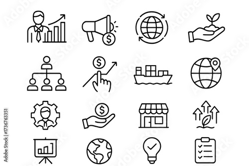 Business growth concepts with charts, symbols, and icons representing finance and sustainability
