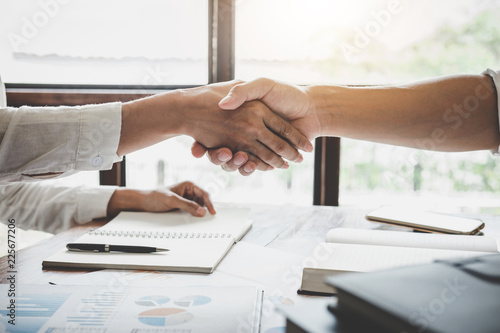 Business handshake after discussing good deal of Trading to sign agreement and become a business partner, contract for both companies, Successful businessman handshake