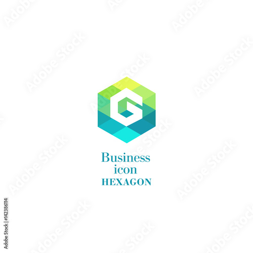 Business icon Hexagon, flat polygonal hexagon, geometric design concept
