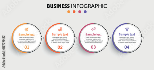 Business infographic design template with 4 options, steps or processes. Can be used for workflow layout, diagram, annual report, web design