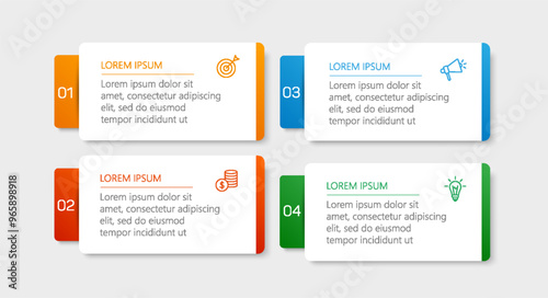 Business infographic design template with 4 options, steps or processes. Can be used for workflow layout, diagram, annual report, web design