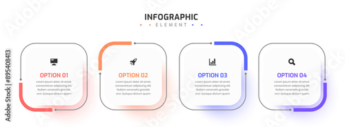 Business Infographic Design with Square Label, Icon and 4 Option. Suitable for Workflow, Diagram, Chart, Presentation