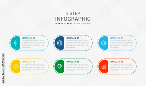 Business infographics design for Six Step, option, parts or process. Infographic 6 element design template for presentation. process diagram, step banner, flow chart, 6 option template.