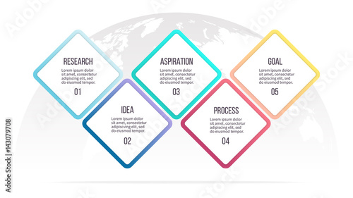 Business infographics. Presentation with 5 steps, options, squares. Vector template.