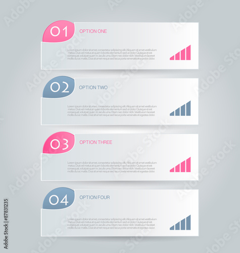 Business infographics tabs template for presentation, education, web design, banner, brochure, flyer. Pink and grey colors. Vector illustration.