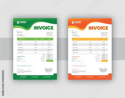 Business invoice form template. Invoicing quotes, money bills or price invoices and payment agreement design templates