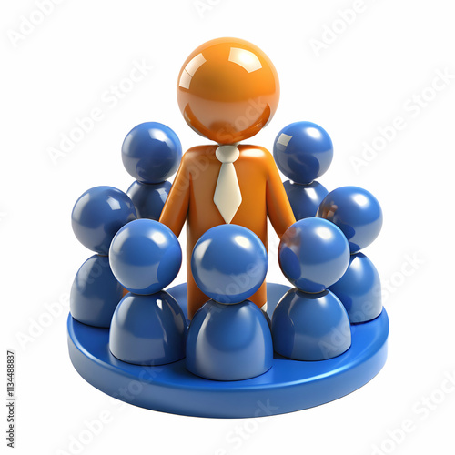 Business Leader Empowering Team on Glossy Background, Motivational Workspace for Growth and Branding