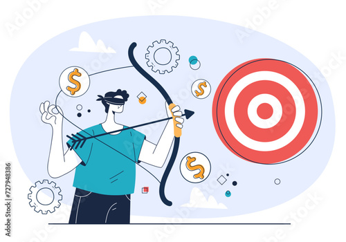 Business leadership blindfold opportunity strategy concept. Vector flat graphic design illustration
