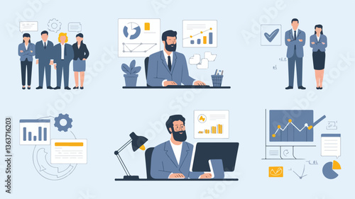 business logo, corporate illustration, office teamwork, professional workplace, business growth, data analytics