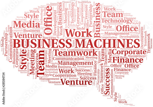 Business Machines word cloud. Collage made with text only.