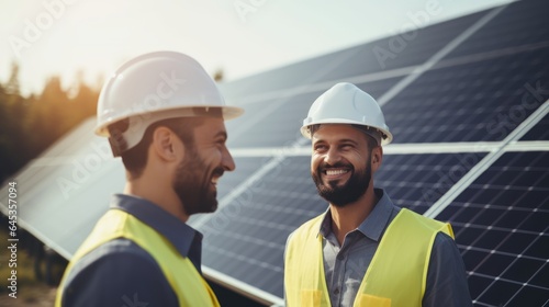 Business man engineer outdoor in the solar energy park, successful in green innovation investment.