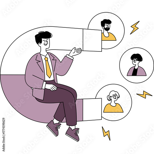 Business Man Illustration Connecting With People Representing Teamwork And Communication In A Professional Setting