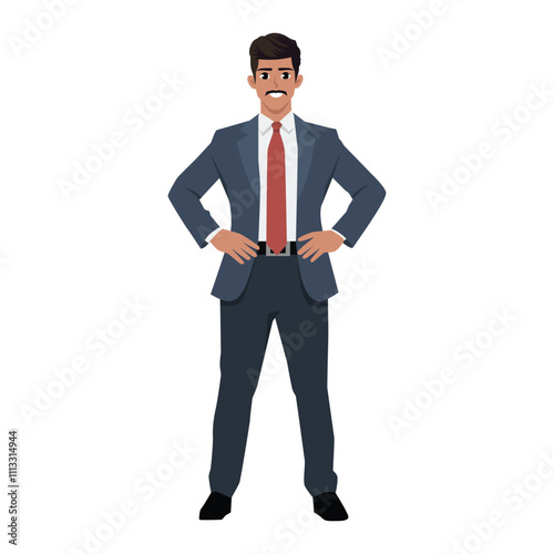 Business man manager with hands on hips. Flat Vector Character Isolated.